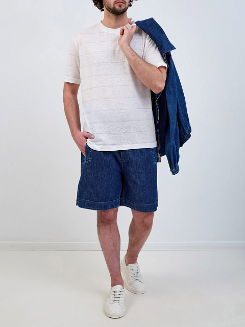 Мужские джинсовые бермуды с волокнами льна и поясом на кулиске ELEVENTY-M купить за 34 720 руб.
