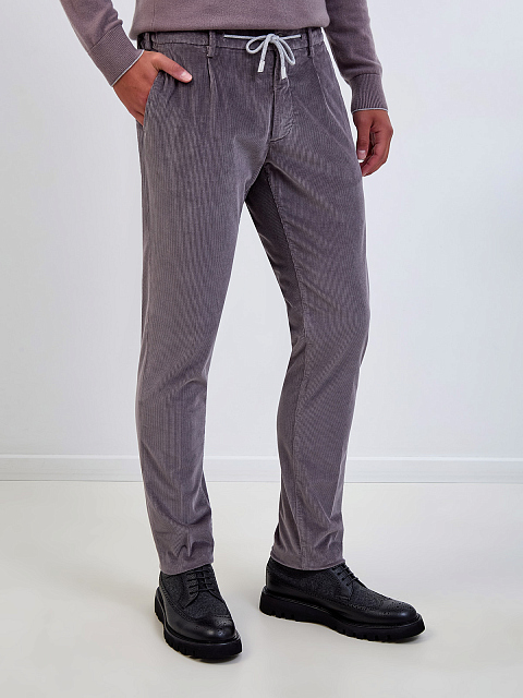 Мужские брюки из вельвета platinum с защипами и поясом на кулиске ELEVENTY-M купить за 44 480 руб.