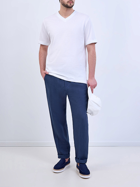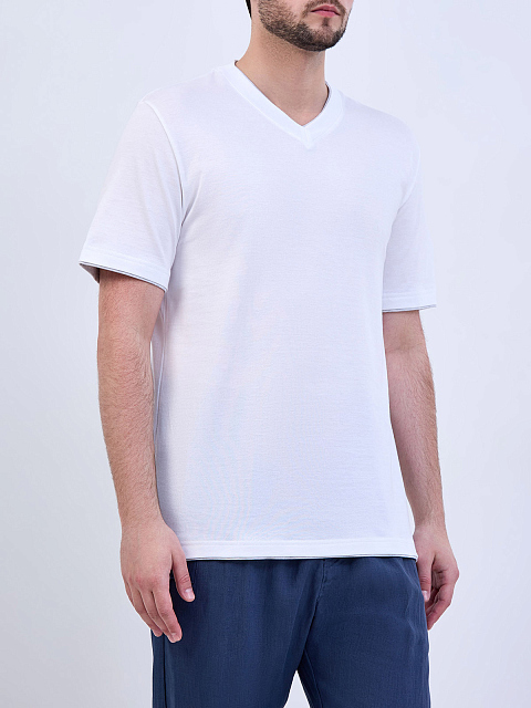 Футболка из гладкого хлопка джерси с V-образным вырезом