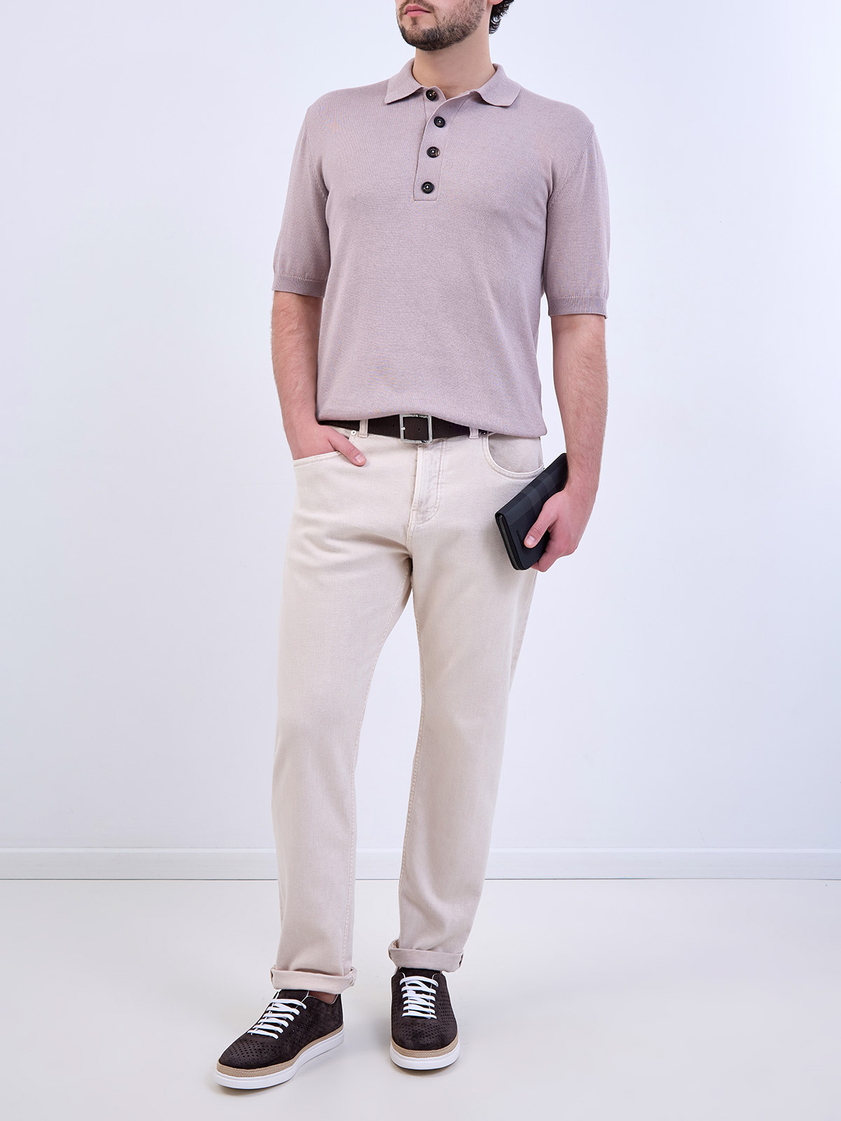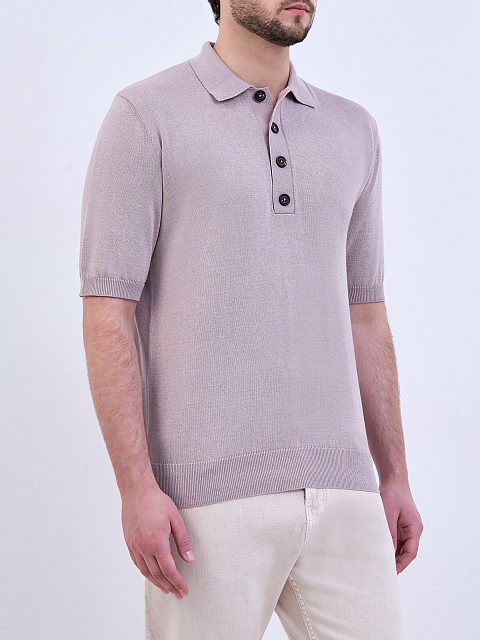 Джемпер-поло из хлопка и кашемира с вязаной отделкой