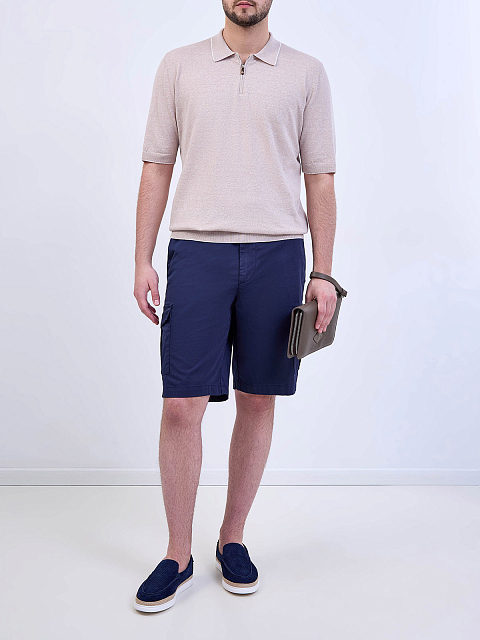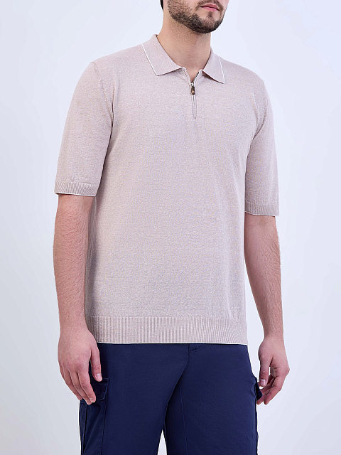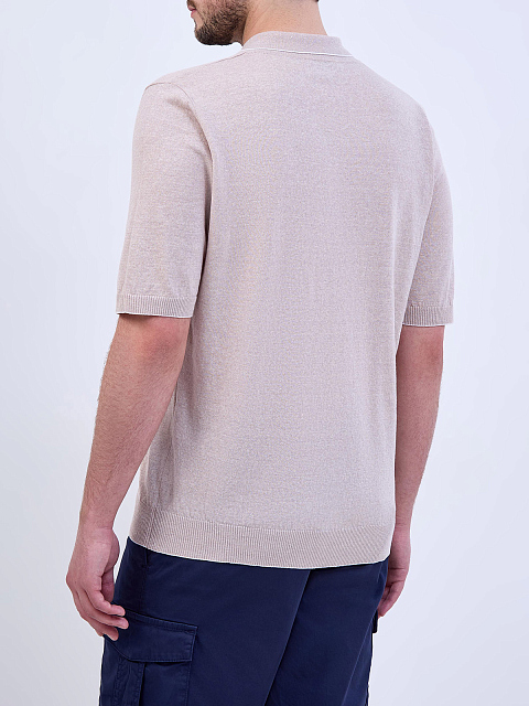 Поло из льняной и хлопковой пряжи с контрастной окантовкой