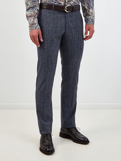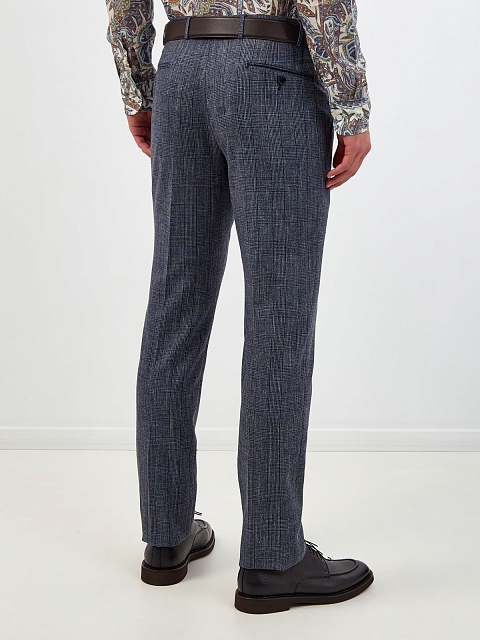 Костюмные брюки из шерсти и хлопка в мелованную клетку