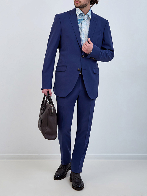 Мужские костюмные брюки от Etro созданы из гладкой благородной ткани на основе шерсти, хлопка и шелка в насыщенном синем оттенке. Невысокий процент эластичных волокон в составе предотвращает появление складок и облегчает уход за изделием. Строгий стиль подчеркнут традиционными брючными карманами — диагональными спереди и карманами на пуговицах с бортами на спинке, а также застежкой на молнию и две пуговицы. Комфорт обеспечивает мягкая внутренняя отделка швов и вытачки для посадки по фигуре. Сделано в Италии.