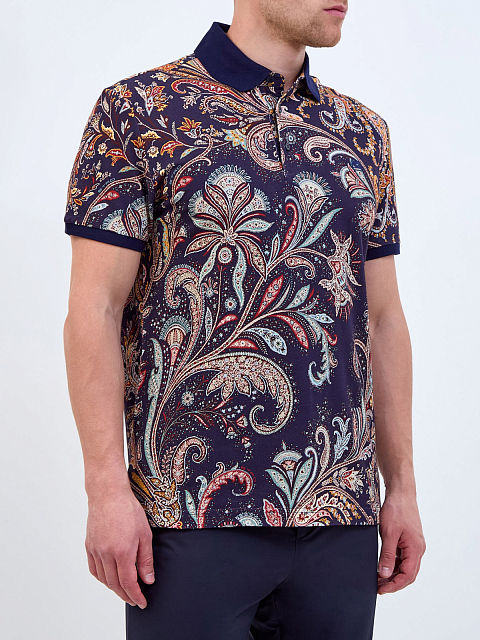 Поло из хлопка пике с флористическим узором пейсли