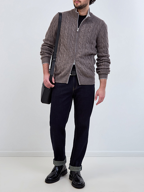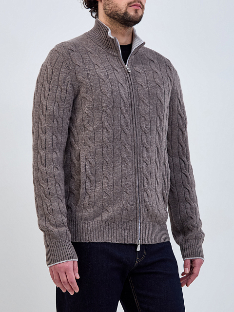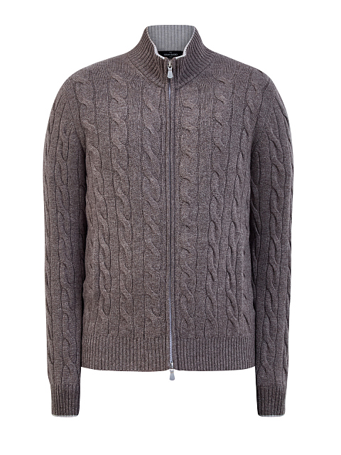Кардиган из кашемировой пряжи с узором аранской вязки