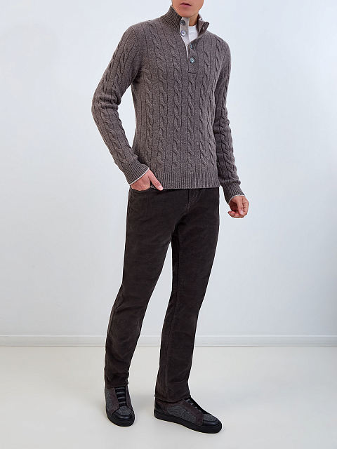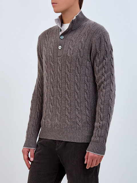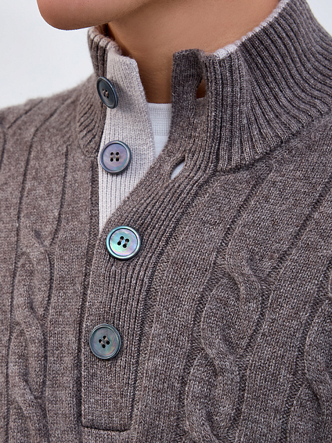 Кашемировый джемпер с вязаным узором и застежкой на пуговицы