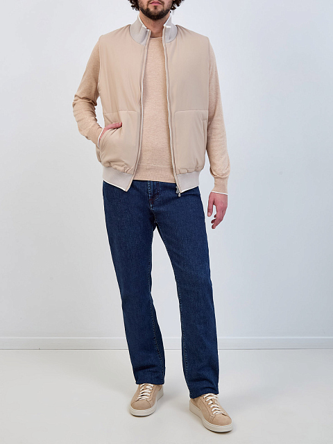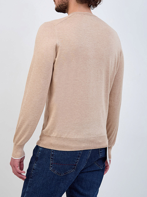 Джемпер из тонкого шелка и хлопка с контрастной окантовкой