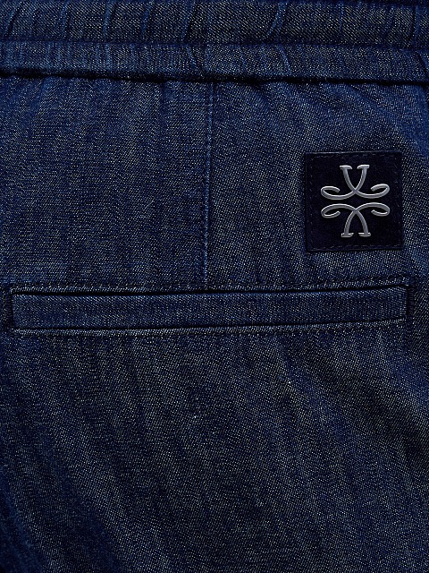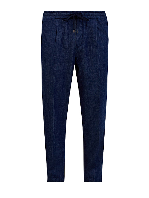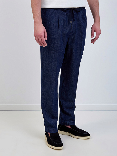 Джинсы из легкого японского денима с кулиской и защипами