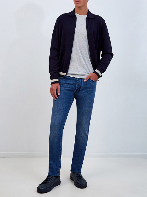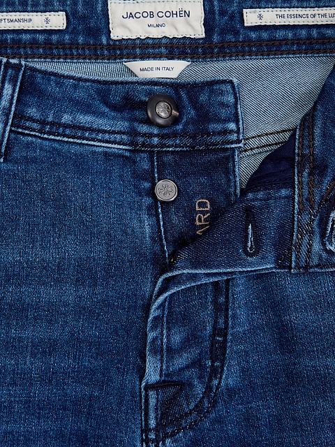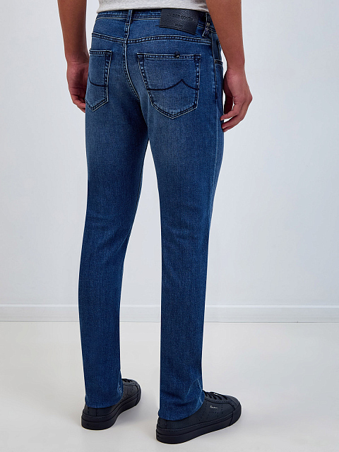 Джинсы из ароматизированного денима и кашемира с кожаным патчем