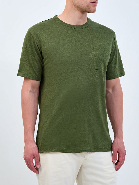 Льняная футболка из меланжевого джерси с накладным карманом