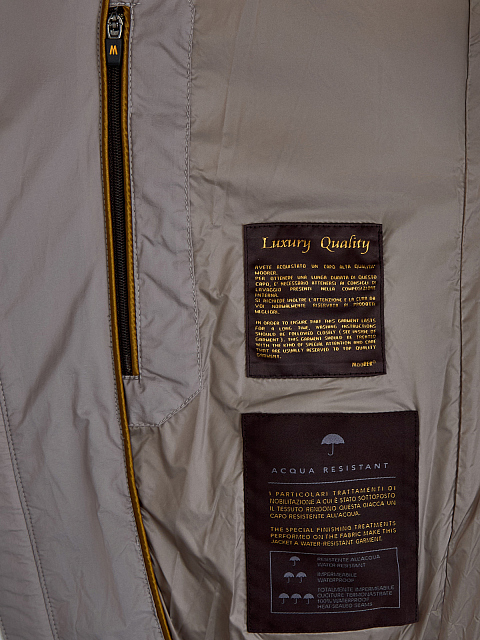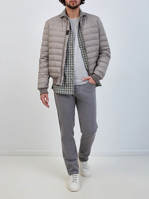 Лаконичная мужская куртка Strauss от Moorer выполнена из матового влагозащитного нейлона в серо-бежевом оттенке. Модель характеризуется стеганой отделкой, гипоаллергенной утепляющей прослойкой и классическим кроем в стиле бомбера. Отделка манжет, нижнего края и окантовка ворота из эластичного трикотажа обеспечивает комфортную посадку по фигуре. Функциональный дизайн предусматривает застежку на молнию с двойным пуллером, прорезные внешние карманы и потайной карман на молнии. Сделано в Италии.