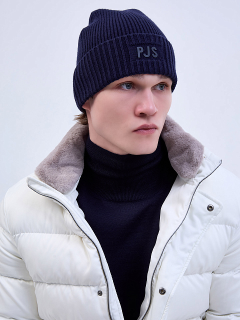 Шапка-бини из эластичной шерсти с фактурным логотипом