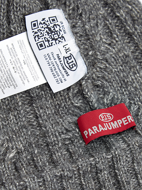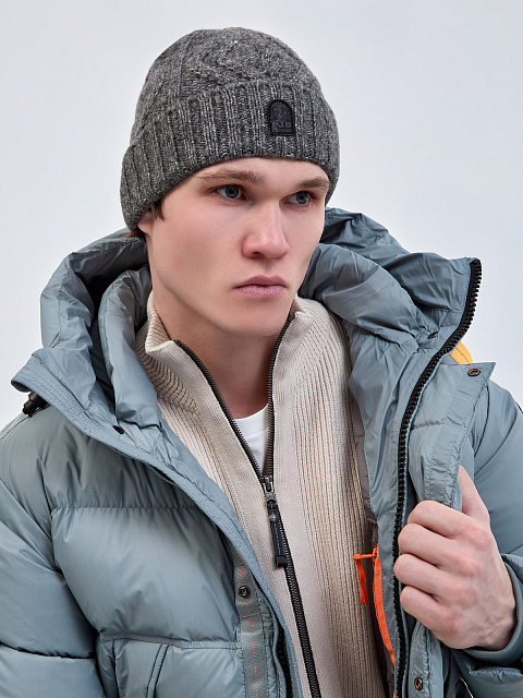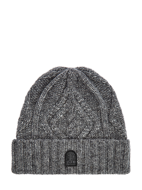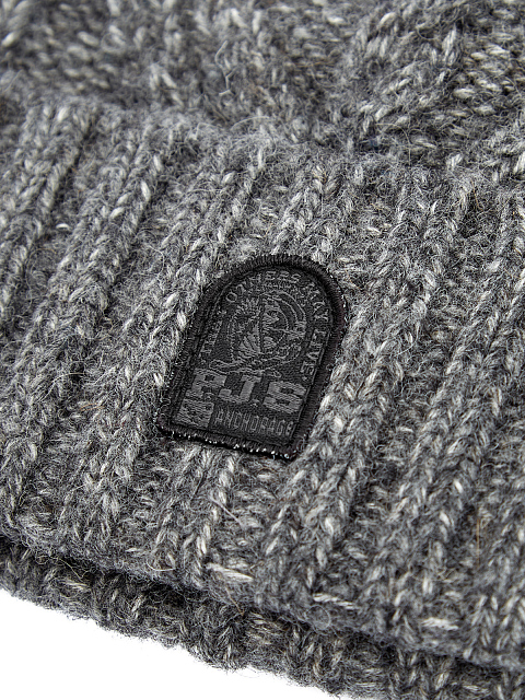 Шапка узорной вязки с нашивкой PJS на отвороте