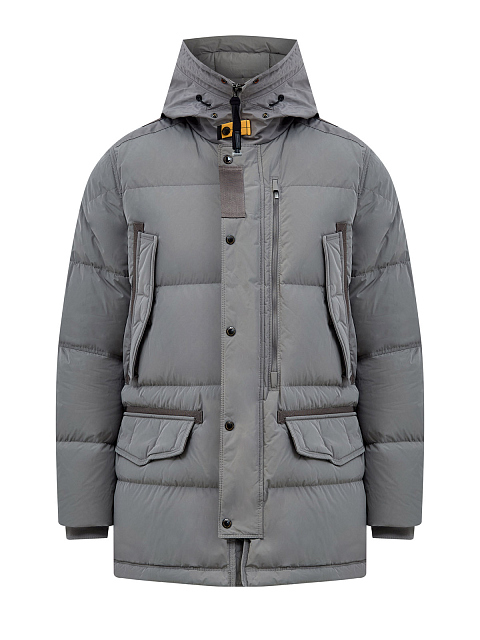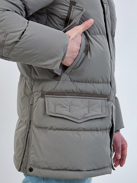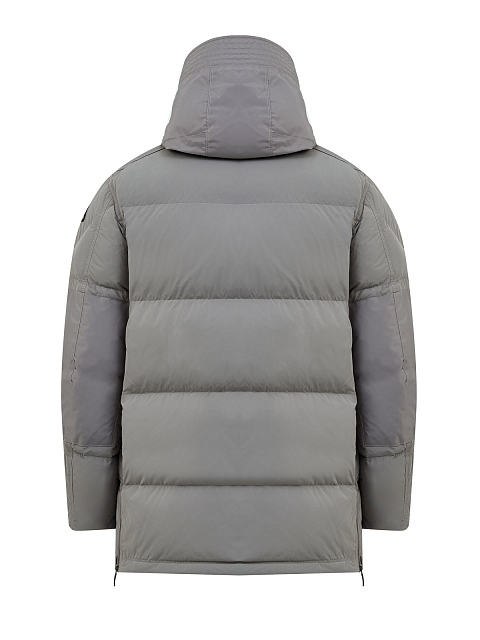 Пуховик из матового микрорепса с капюшоном и штормовой планкой
