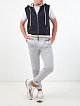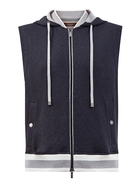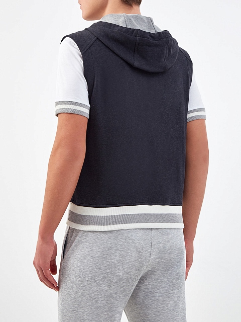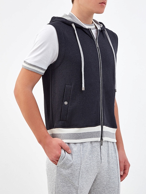 Жилет с капюшоном и трикотажной отделкой в полоску