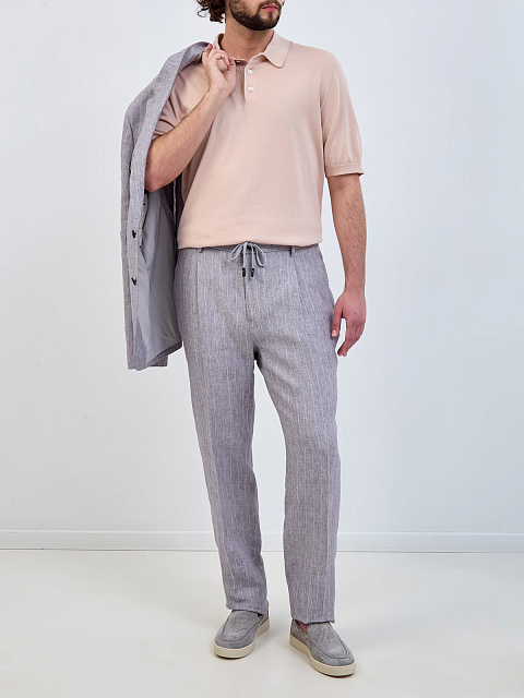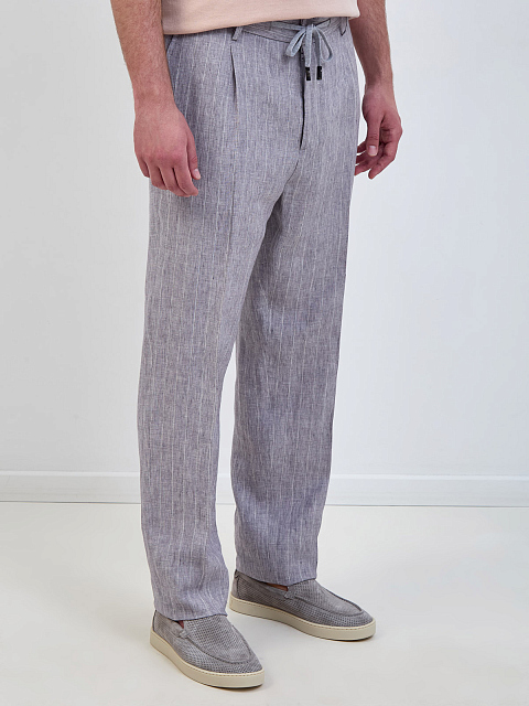 Мужские льняные брюки в тонкую полоску с защипами и поясом на кулиске PESERICO-M купить за 39 830 руб.