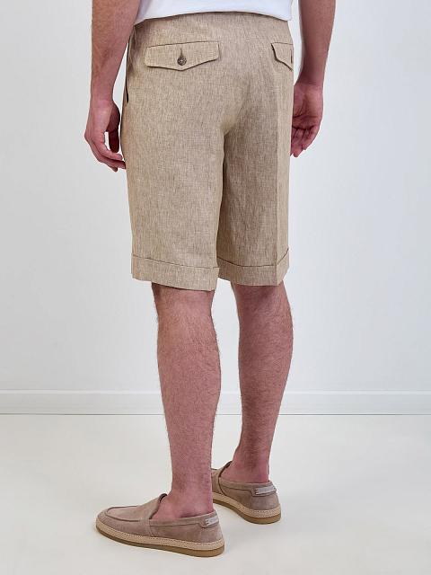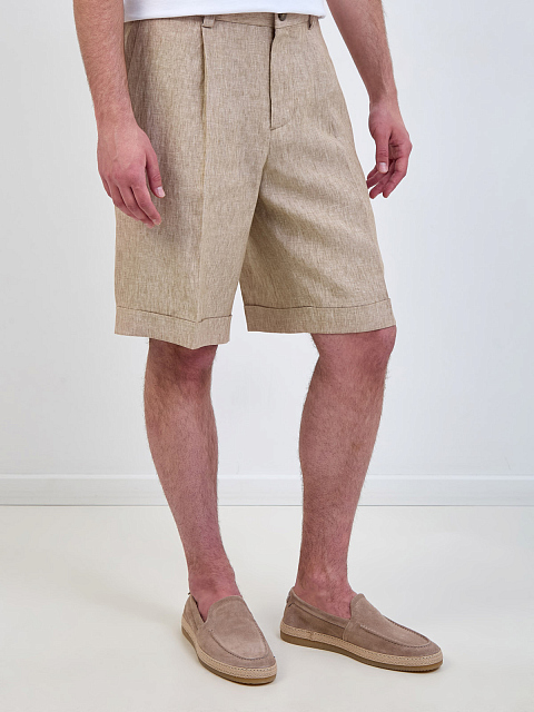 Бермуды из льняного габардина с заложенными складками
