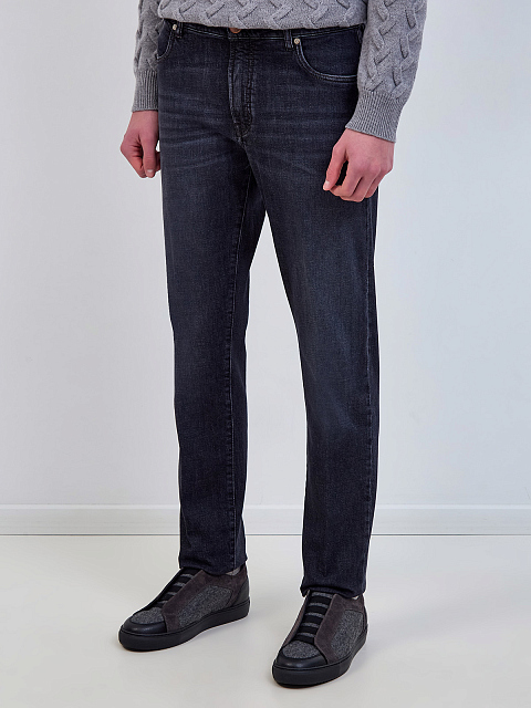 Мужские джинсы slim fit из выбеленного денима с кожаным патчем PESERICO-M купить за 39 840 руб.