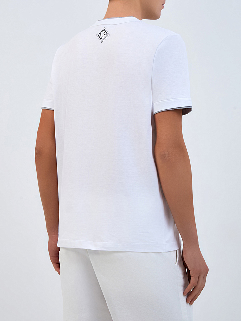 Мужская футболка в базовом белом цвете от Peserico. Лаконичная модель выполнена из гладкого хлопка джерси — дышащая и гигроскопичная ткань обеспечивает полную свободу движений, делая повседневный аутфит максимально комфортным. Расслабленный акцент в образ вносит контрастная окантовка ворота и манжет. Сделано в Италии.