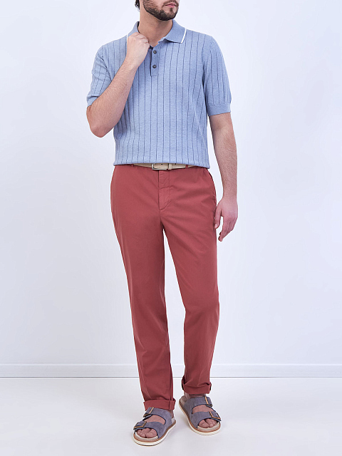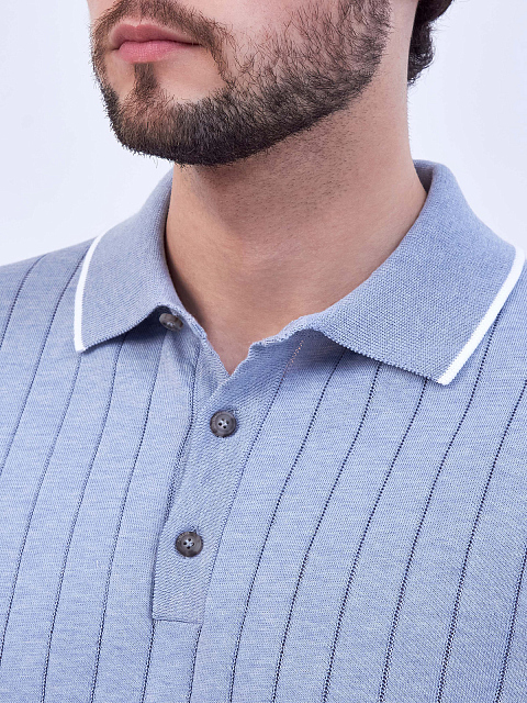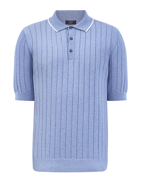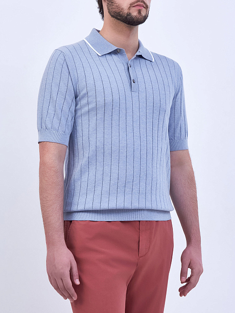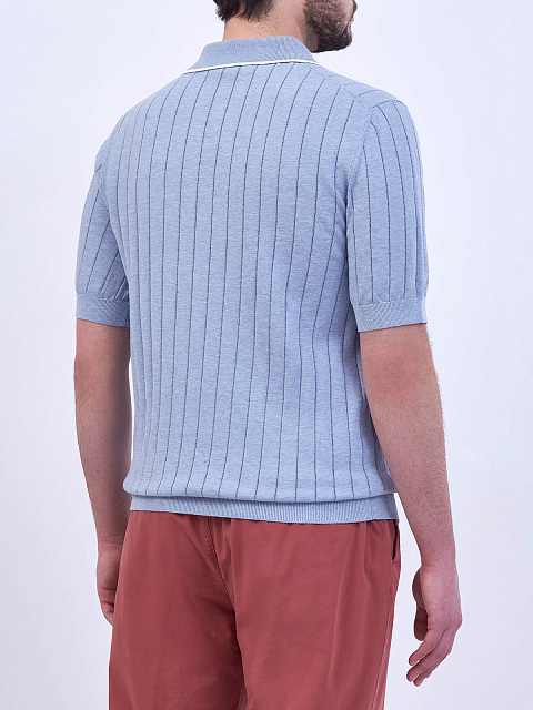 Хлопковый джемпер-поло в полоску с контрастным кантом