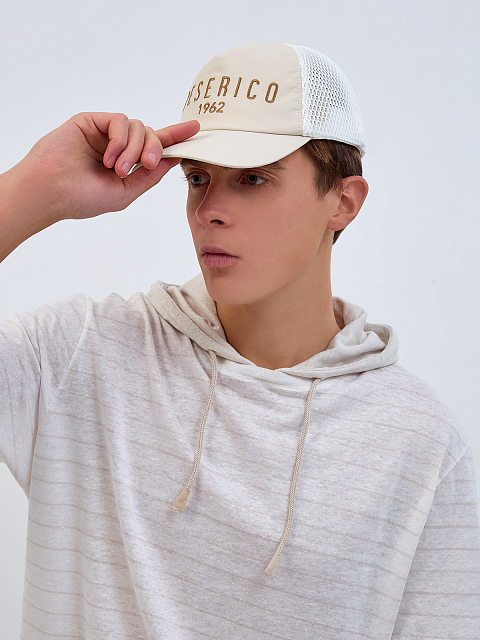 Лаконичная бейсболка от Peserico выполнена в бежево-белой гамме из хлопка. Сетчатая вставка на спинке дополняет образ фактурным акцентом и обеспечивает максимальный комфорт в теплое время года. Аксессуар с плотным изогнутым козырьком и замшевым ремешком для индивидуальной регулировки по ширине. Завершающий штрих — объемная вышивка на передней планке.