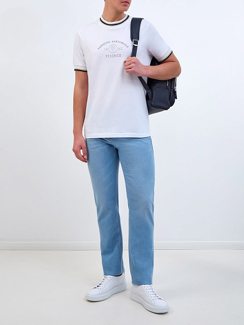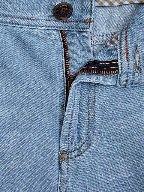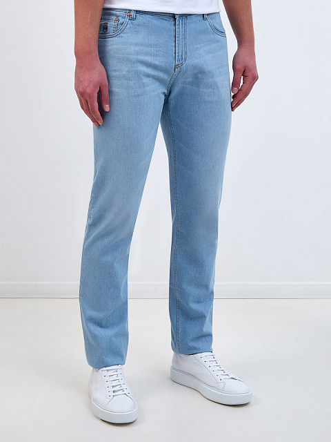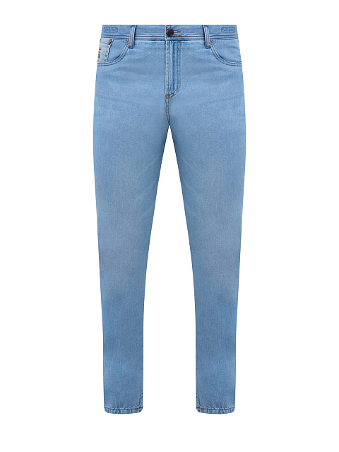 Джинсы из выбеленного денима с двухцветной прострочкой и нашивкой