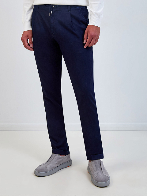 Джинсы зауженного кроя Aurelio с защипами и поясом на кулиске