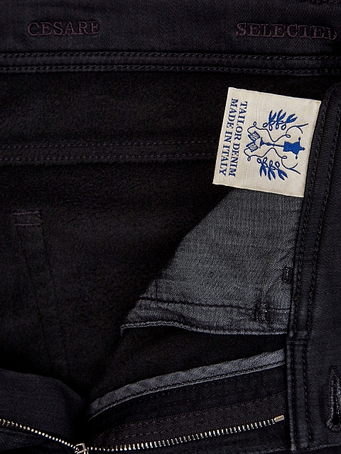 Мужские джинсы классического кроя Cesare от Scissor Scriptor выполнены из японского денима Kurabo. Плотная ткань с мягкой утепляющей прослойкой делает модель идеальной основой для создания повседневных аутфитов в холодное время года. Глубокий черный оттенок достигнут мастерами бренда вручную, расслабленный акцент в образ вносит вышитый логотип бренда. Сделано в Италии.