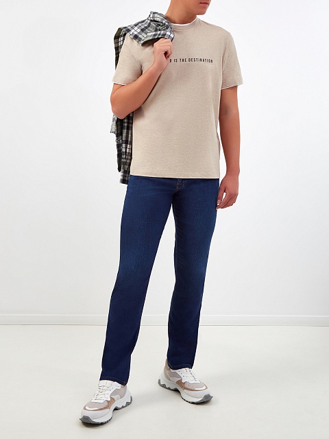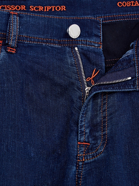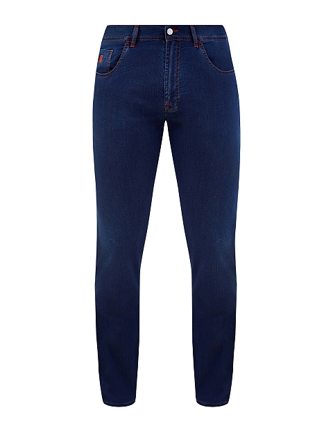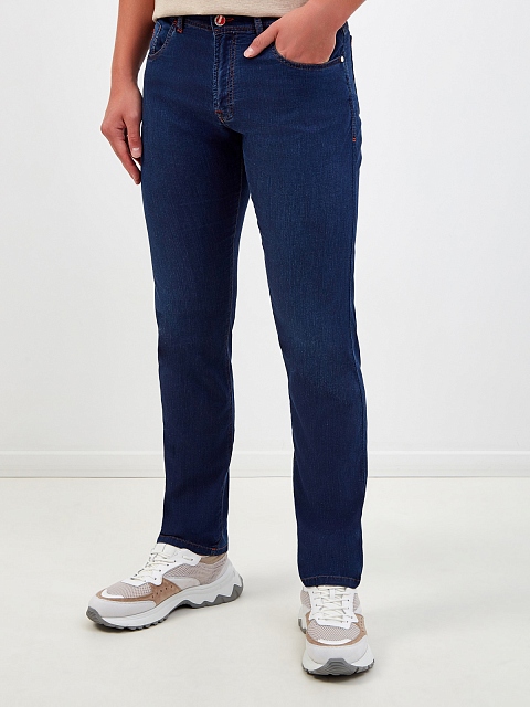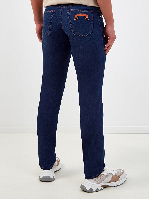 Джинсы из окрашенного вручную денима с контрастной отделкой