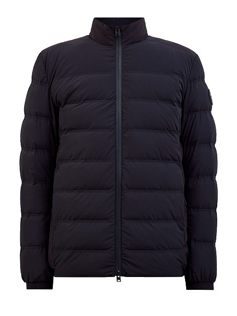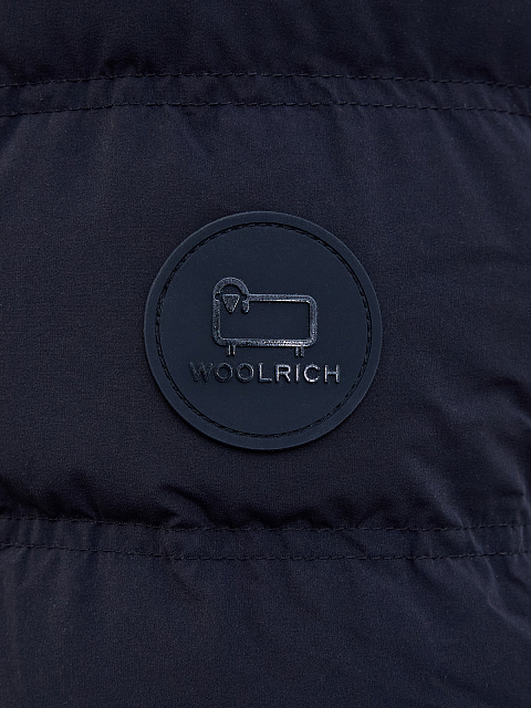 Мужской пуховик из водо- и ветроустойчивого эластичного нейлона от Woolrich — функциональный и комфортный вариант для повседневного гардероба. Модель в глубоком оттенке ночного неба дополнена горизонтальной стежкой, водонепроницаемыми вставками и утеплителем из утиного пуха и пера. Эластичные манжеты и застежка на усиленную молнию с двойным пуллером дополнительно защищают от ветра. Детали: патч с логотипом, прорезные карманы на молниях.