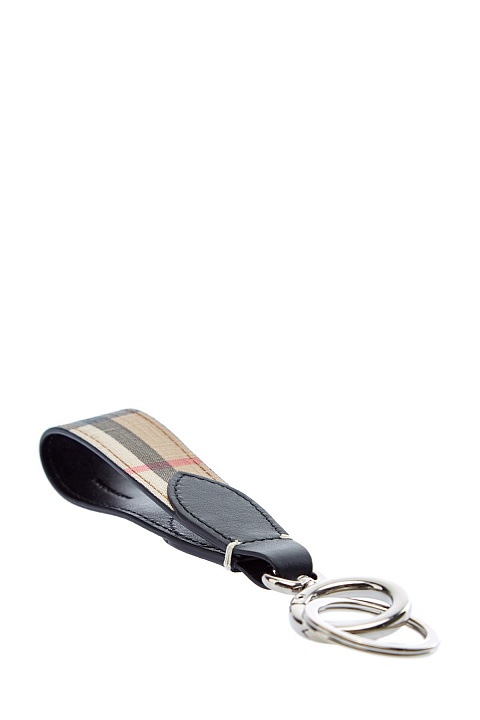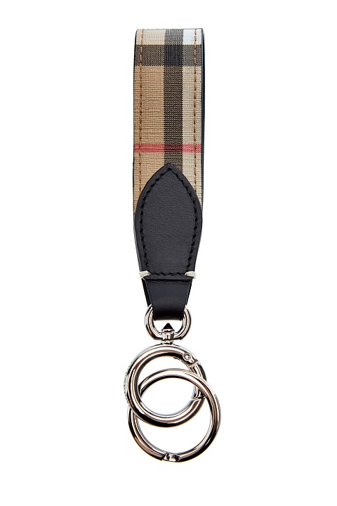 Брелок в виде ленты от Burberry выполнен из ткани e-canvas, которая производится из возобновляемых ресурсов. Внешнее покрытие из прочного полимера обеспечивает износостойкость материала. Аксессуар в культовую клетку Vintage Check дополнен отделкой из телячьей кожи. Модель оснащена двумя кольцами-карабинами с гравированной монограммой бренда. Длина изделия составляет 10 см.