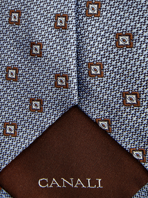 Стильный галстук ручной работы от Canali. Вышитый принт в жаккардовой технике создает дополнительные варианты цветовых сочетаний в образе. Для производства аксессуара используют только цельные отрезы шелка — это помогает добиться четкой фактуры, которая с легкостью образует любой необходимый узел. Сделано в Италии.