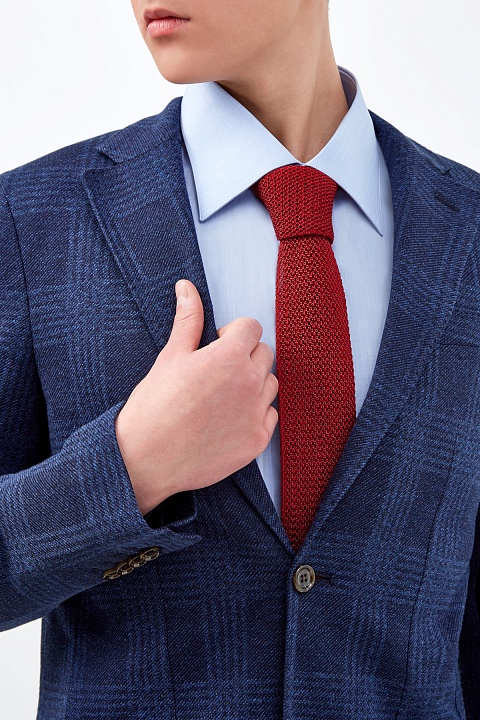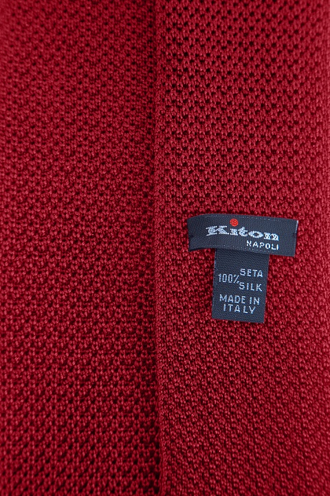 Мужской галстук Kiton в стиле casual, выполненный вручную из трикотажных нитей шелка бордового цвета, образующих фактурный узор на поверхности. Модель характеризуется одинаковой шириной по всей длине и эластичными кромками, созданными в технике плотной чулочной вязки. Сделано в Италии.