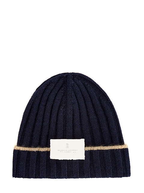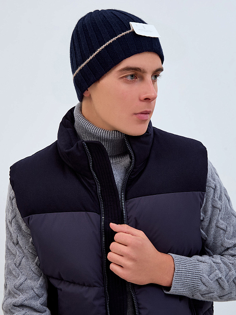 Кашемировая шапка фактурной эластичной вязки с окантовкой