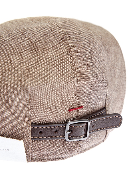 Лаконичная кепка-коппола от Brunello Cucinelli создана из легкого льна. Кожаный ремешок с металлическим фиксатором позволяет регулировать плотность посадки. Базовый песочный оттенок делает аксессуар универсальным дополнением любого образа. Текстильная лента внутренней подкладки в цвете «бордо» является отличительной особенностью бренда. Сделано в Италии.