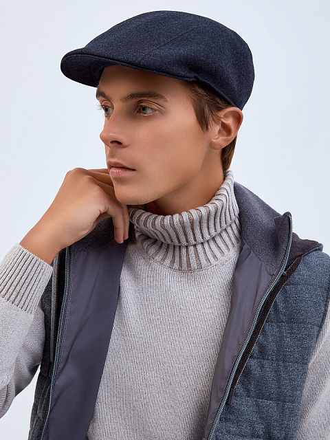 Шерстяная кепка-коппола с деталью из кожи
