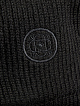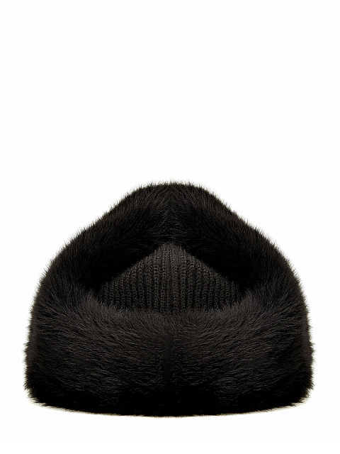 Вязаная шапка-ушанка из шерстяной пряжи и эко-меха