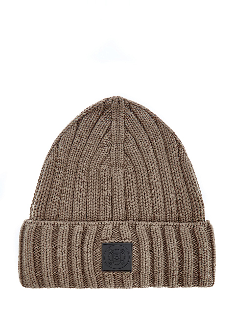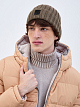 Шапка из эластичной хлопковой пряжи с патчем на отвороте