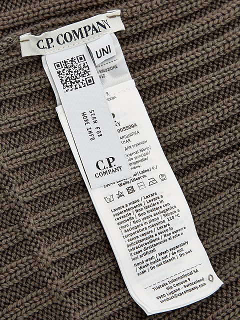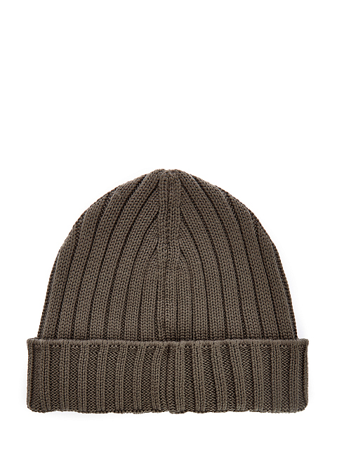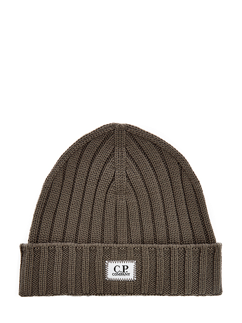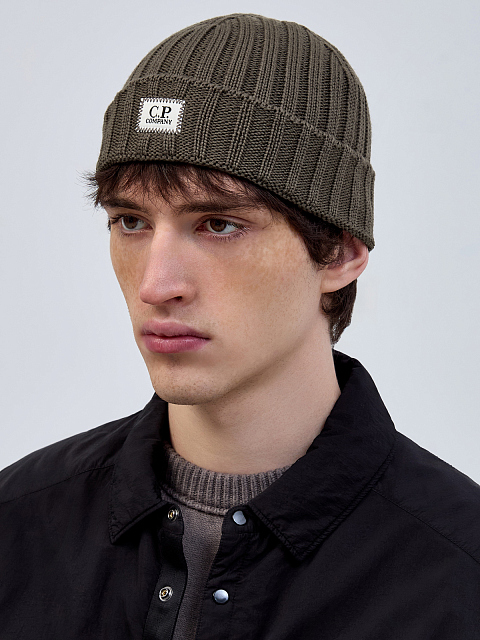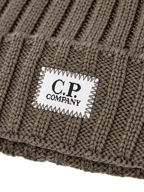 Шерстяная шапка фактурной вязки с нашивкой