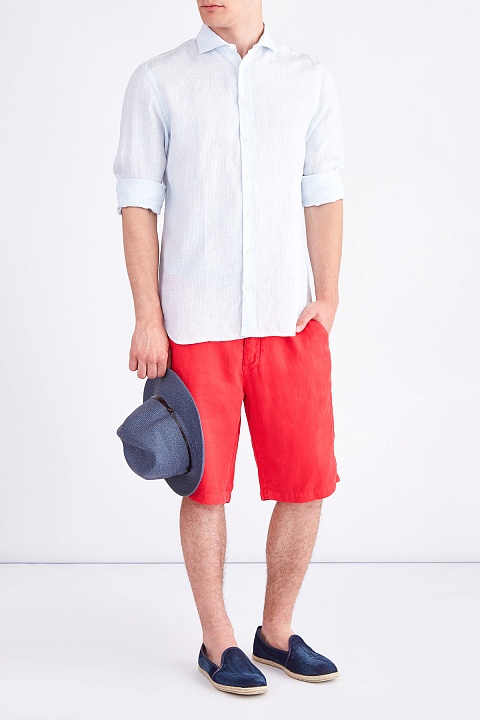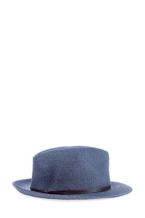 Лаконичное мужская соломенная шляпа-трилби бренда MC2 Saint Barth. Модель выполнена из обработанной соломы светло-синего цвета. Изделие с вогнутой тульей с тремя ложбинками и полями средней ширины со слегка загнутыми вверх краями. Для идеальной фиксации шляпы на голове, внутри имеется околышек в фактурной поверхностью и ярлыком бренда. Модель украшена кожаной лентой темно-коричневого тона.