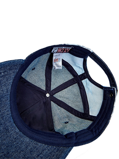 Бейсболка от MC2 Saint Barth из плотного хлопкового денима — переплетение нитей контрастных оттенков придает фактуре графический эффект. Присущее бренду расслабленное настроение подчеркивает вставка с принтом пейсли. Лента с металлическим фиксатором позволяет индивидуально отрегулировать полноту изделия. Детали: прострочка швов в тон, плотный козырек, отверстия для циркуляции воздуха.