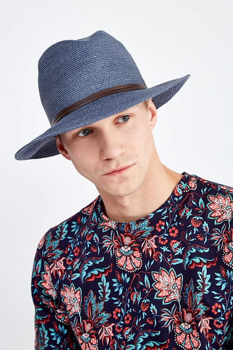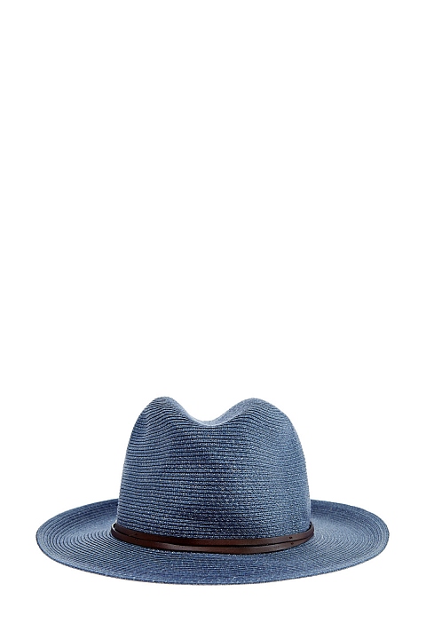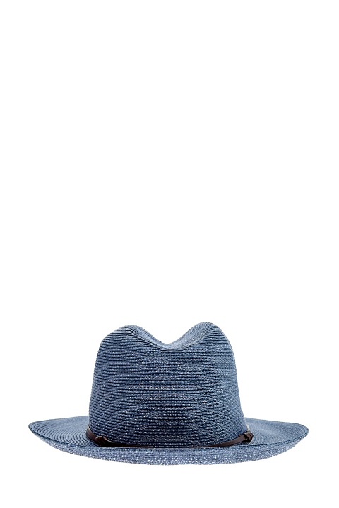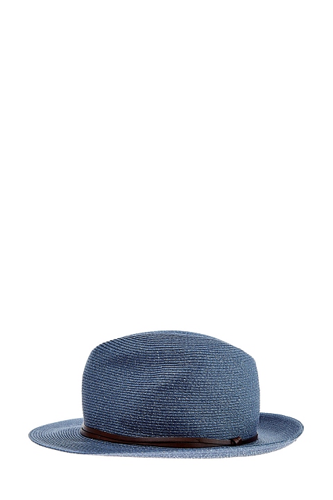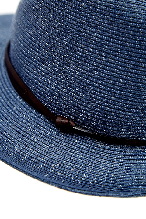 Шляпа оттенка денима с декором кожаной лентой