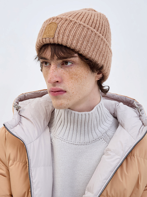 Шапка из хлопковой и шерстяной пряжи с нашивкой в тон