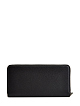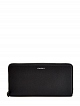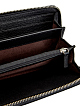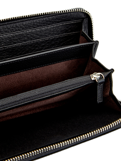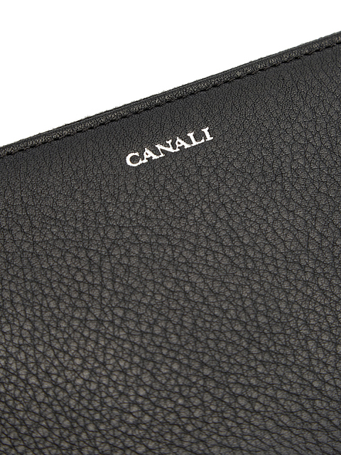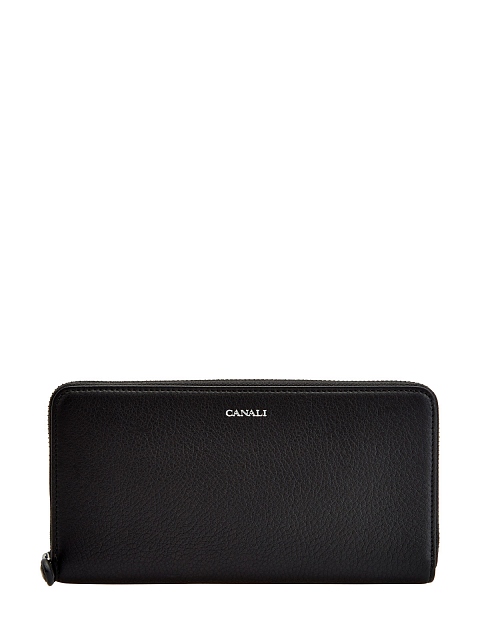 Функциональный мужской бумажник от Canali выполнен из матовой крупнозернистой кожи с фактурным узором в классическом черном цвете. Модель оснащена тремя отделениями для купюр с ячейками для банковских карт и одним центральным карманом для монет. Аксессуар дополнен застежкой на молнию и логотипом бренда. Сделано в Италии.