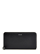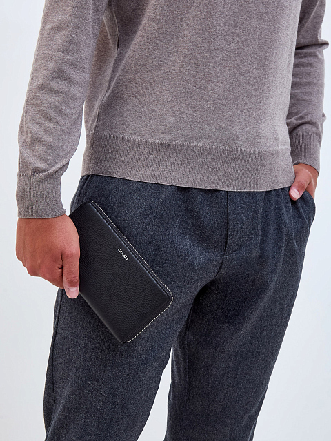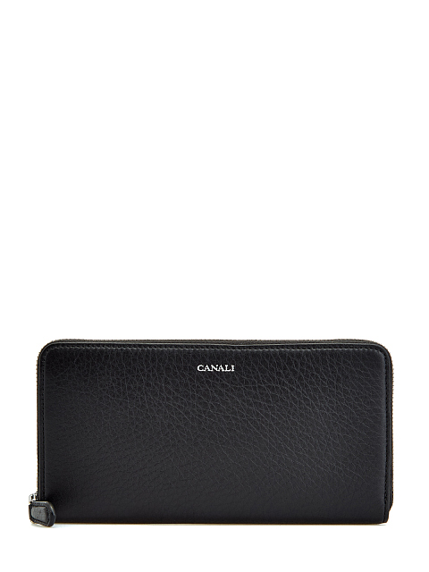 Функциональный мужской бумажник от Canali выполнен из матовой крупнозернистой кожи с фактурным узором в классическом черном цвете. Модель оснащена тремя отделениями для купюр с ячейками для банковских карт и одним центральным карманом для монет. Аксессуар дополнен застежкой на молнию и логотипом бренда. Сделано в Италии.