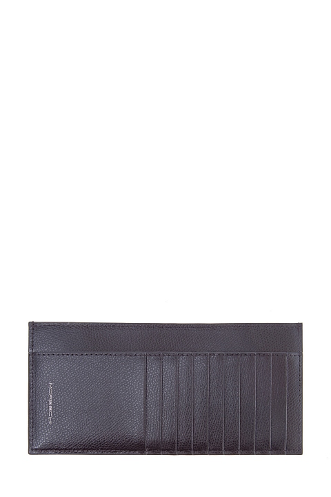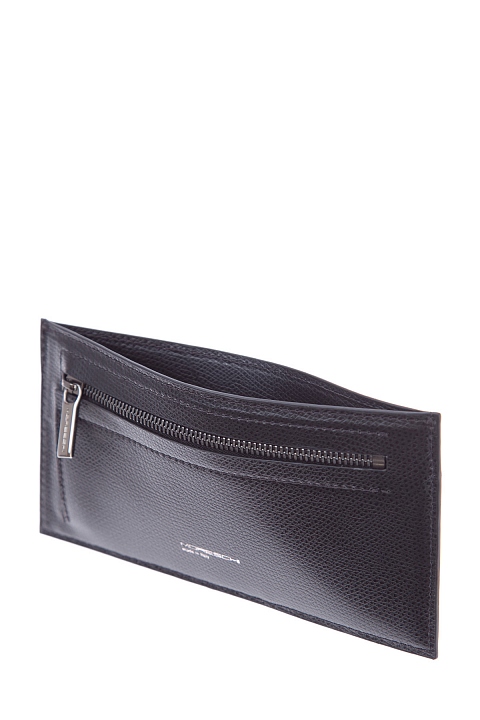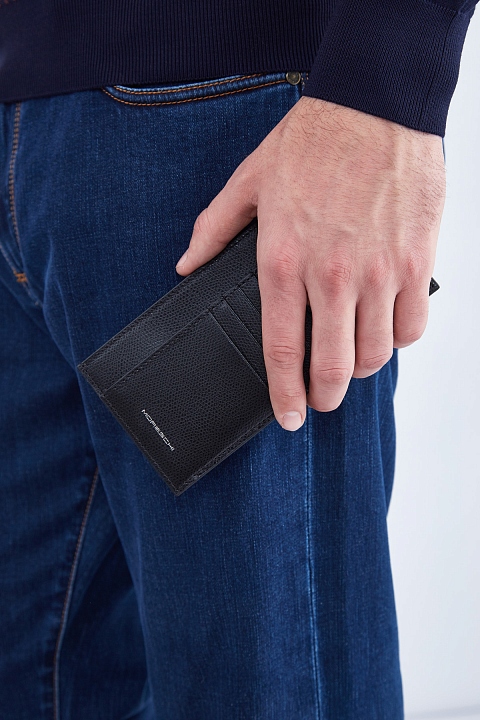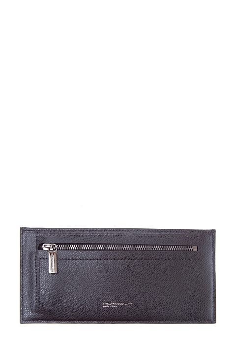 Лаконичная мужская визитница из коллекции Moreschi выполнена из гибкой телячьей кожи черного цвета с галечным узором на поверхности и дополнена фирменной символикой. Модель оснащена отделениями для купюр и слотами для банковских карт, а также кармашком на молнии. Размеры изделия: 18 см х 9 см. Сделано в Италии.