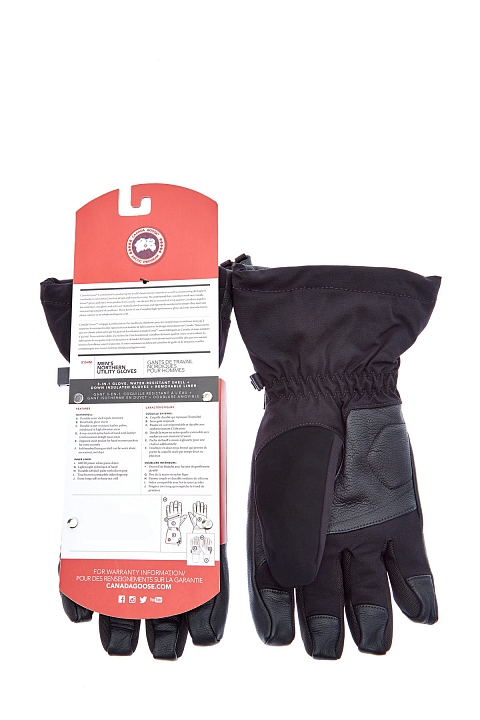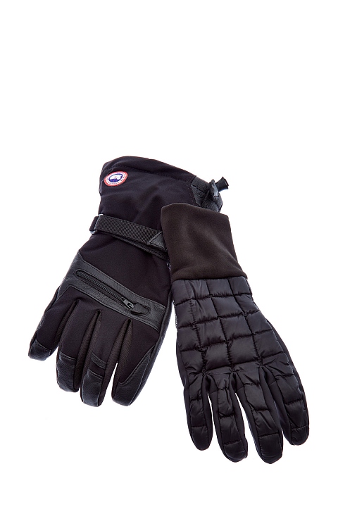 Двойные мужские перчатки от Canada Goose выполнены из нейлона с водоотталкивающей пропиткой. Потайные эластичные манжеты можно расположить внутри рукавов верхней одежды для максимальной теплоизоляции, а прослойка из воздушного пуха обеспечивает согревающий эффект. Съемная внутренняя пара подходит для управления сенсорными устройствами. Детали: противоскользящая отделка из кожи козы, фиксация на ленты велькро и кулиски, флисовая подкладка.