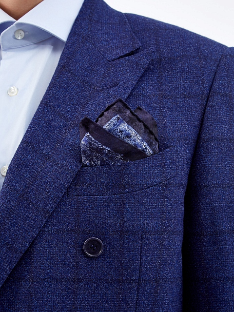 Карманный мужской платок-паше от Canali создан мастерами бренда вручную из струящегося шелка. Края обработаны объемным швом, набивной принт с флористическим мотивом в синих тонах подчеркивает неформальный стиль изделия. Сделано в Италии.
