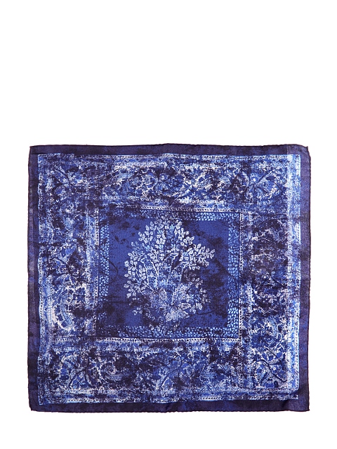 Платок-паше из шелка с принтом в синей гамме