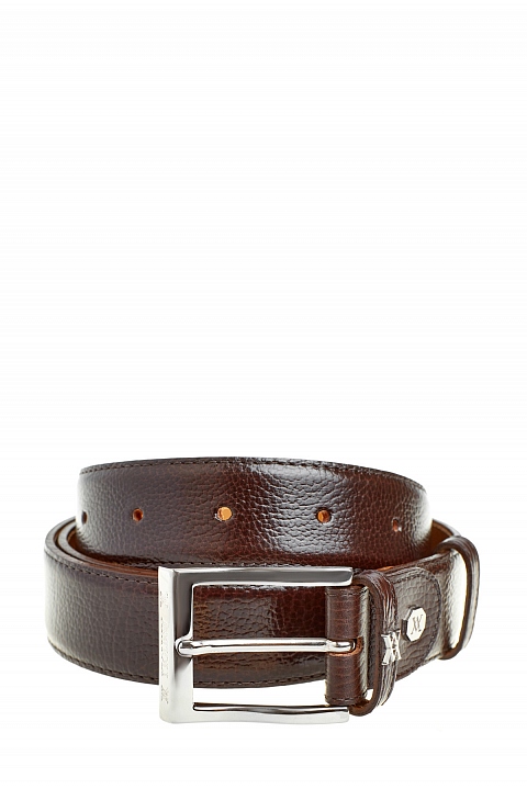 Ремень из крупнозернистой кожи в табачном оттенке